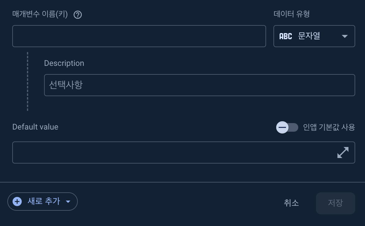 각 인풋 칸에 자신이 원하는 값을 채워 구성을 만들어주시면 됩니다.